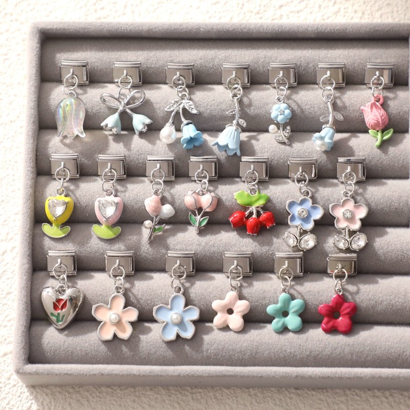 Esmalte Flor Pingente Charme Links Italianos Caber 9mm Pulseira De Aço Inoxidável Fazendo DIY
