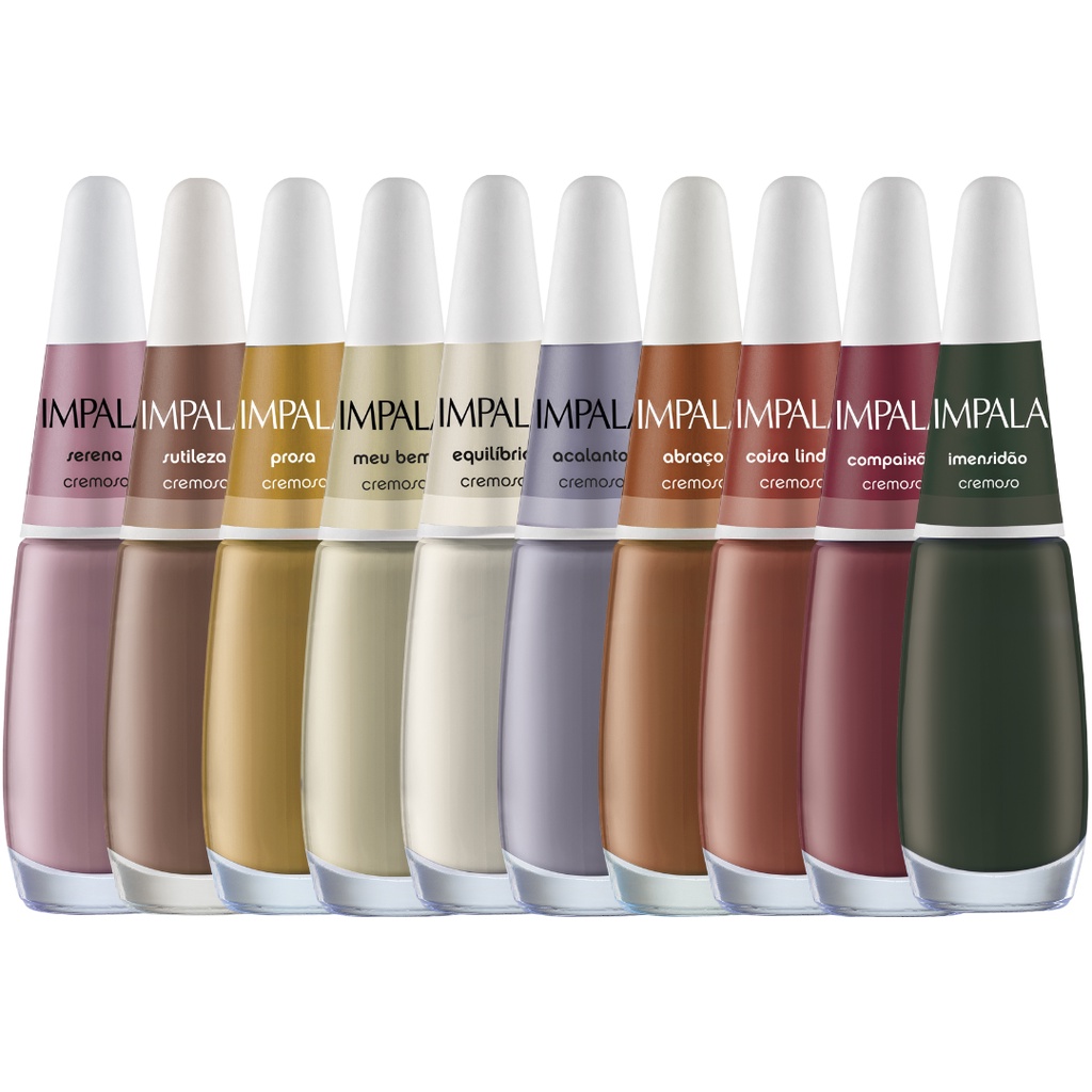 Impala A Cor da Sua Moda A linha de Esmaltes Impala A Cor da Sua Moda traz cores que te acompanham em todas as ocasiões. São inúmeras tonalidades que vão do clássico ao mais descolado e fashion, além dos lançamentos que sempre retratam o melhor da moda e tendência nacional e internacional. Assim, sempre terá um esmalte Impala que combine com seu look e deixe suas unhas ainda mais bonitas. Com alta cobertura, longa duração, brilho intenso e secagem rápida, os esmaltes Impala são perfeitos para te acompanhar em diferentes propostas de looks e combinações. Além disso, a fórmula Impala é dermatologicamente testada e nenhum de nossos produtos são testados em animais. É interessante saber: Alta cobertura Longa duração Brilho intenso Secagem rápida Dermatologicamente testado Não testado em animais