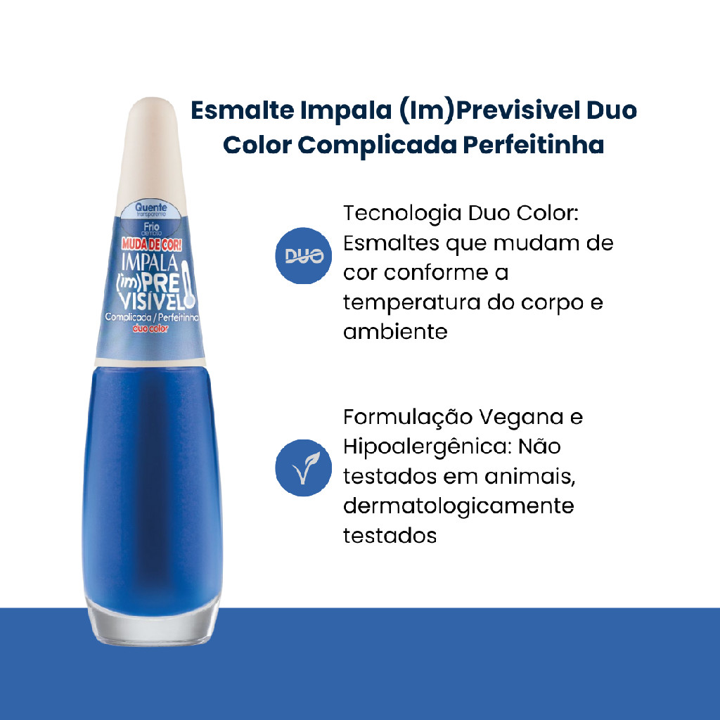 | Esmalte Impala (Im)Previsivel Color Complicada Perfeitinha este produto | R$ 11,77 | — | 4.8/5 | — |