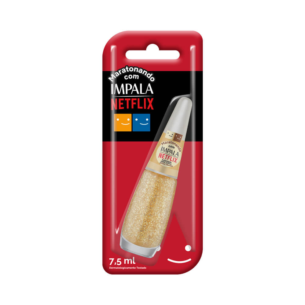 Prepare-se para maratonar de um jeito completamente novo! A coleção Cores Netflix traz para as suas unhas toda a emoção das histórias que fazem você rir, chorar, se apaixonar ou roer as unhas de tensão. Assim como escolher o que assistir, escolher o tom do esmalte é uma forma de expressar seu humor, seu estilo e até o que você está vivendo no momento. E se cada episódio tem um impacto, por que não deixar isso refletir também nas suas mãos? Inspirada nos sentimentos que só a Netflix desperta, a coleção une tons intensos, clássicos, misteriosos e ousados — do vermelho apaixonante ao glitter flocado digno de “TOP 10”. Com nomes divertidos e cheios de personalidade, cada cor é um convite para reviver suas tramas favoritas de um jeito criativo e original. Afinal, depois do “Tudum”, agora é a sua vez de brilhar com Impala e Netflix!