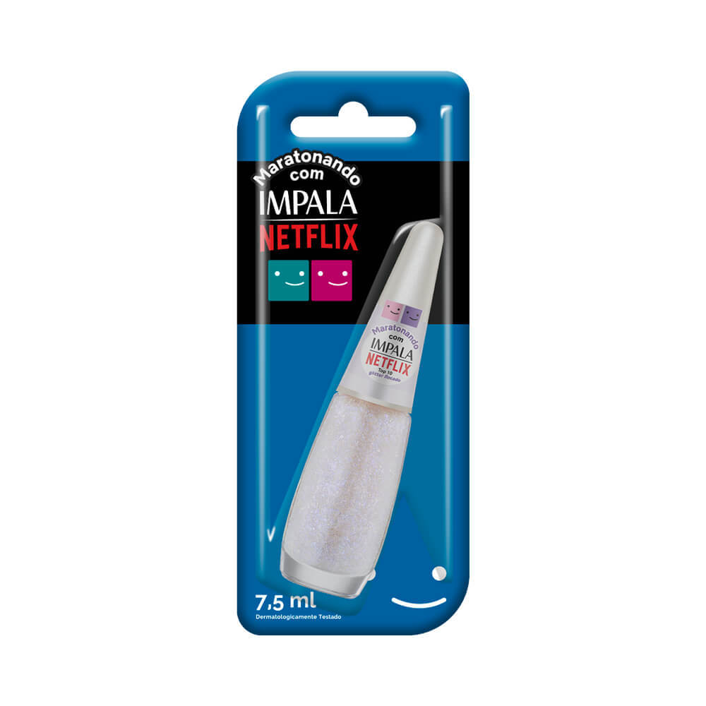 ESMALTE MARATONANDO COM IMPALA NETFLIX TOP 10 ============================================= Prepare-se para maratonar com estilo usando o Esmalte Maratonando com Impala Netflix Top 10. Este esmalte traz toda a emoção das histórias que você adora em suas unhas, com cores intensas e misteriosas. A coleção oferece tons que refletem seu humor e estilo, proporcionando ousadia e originalidade. O acabamento profissional com glitter flocado oferece um visual brilhante e distinto nas suas unhas. CORES INTENSAS E MISTERIOSAS A coleção oferece tons que refletem seu humor e estilo, proporcionando ousadia e originalidade. ACABAMENTO COM GLITTER FLOCADO O acabamento profissional com glitter flocado oferece um visual brilhante e distinto nas suas unhas. MODO DE USO =========== Para um resultado impecável, siga as instruções de uso simples e eficazes. Limpe bem as unhas, removendo qualquer resíduo de esmalte antigo antes de aplicar o novo. Aplique uma camada fina do esmalte e deixe secar completamente para melhor acabamento. Intensifique a cor aplicando uma segunda camada e aguarde a secagem completa. Finalize com uma camada de top coat para aumentar a durabilidade e brilho do esmalte. PREPARAÇÃO Limpe bem as unhas, removendo qualquer resíduo de esmalte antigo antes de aplicar o novo. APLICAÇÃO DA PRIMEIRA CAMADA Aplique uma camada fina do esmalte e deixe secar completamente para melhor acabamento. APLICAÇÃO DA SEGUNDA CAMADA Intensifique a cor aplicando uma segunda camada e aguarde a secagem completa. ACABAMENTO Finalize com uma camada de top coat para aumentar a durabilidade e brilho do esmalte. CARACTERÍSTICAS E BENEFÍCIOS DO ESMALTE MARATONANDO COM IMPALA NETFLIX TOP 10 ============================================================================= O Esmalte Maratonando com Impala Netflix Top 10 destaca-se por proporcionar um acabamento brilhante e duradouro. Testes garantem segurança no uso, minimizando riscos de reações adversas. Desenvolvido para oferecer resistência e manter o brilho por mais tempo. Pode ser usado sozinho ou como cobertura para outros esmaltes, garantindo versatilidade. Design exclusivo que une beleza e entretenimento, ideal para amantes da plataforma. FÓRMULA DERMATOLOGICAMENTE TESTADA Testes garantem segurança no uso, minimizando riscos de reações adversas. LONGA DURAÇÃO Desenvolvido para oferecer resistência e manter o brilho por mais tempo. VERSATILIDADE DE USO Pode ser usado sozinho ou como cobertura para outros esmaltes, garantindo versatilidade. INSPIRADO NA NETFLIX Design exclusivo que une beleza e entretenimento, ideal para amantes da plataforma. ESPECIFICAÇÕES TÉCNICAS ======================= O produto oferece especificações que garantem qualidade e segurança no uso diário. Volume: 8 ml Acabamento: Glitter Material da Embalagem: Vidro com tampa de plástico Fórmula: Livre de substâncias nocivas como tolueno e formaldeído Cor: Branco perolado com nuances de azul e rosa Compatibilidade: Para uso nas unhas das mãos e pés SOBRE A MARCA IMPALA ==================== Impala é sinônimo de qualidade e inovação no mundo dos esmaltes, sempre capturando tendências de moda. Com anos de atuação, Impala conquistou a confiança dos consumidores, garantindo beleza e saúde para as unhas. Impala oferece uma vasta gama de cores, permitindo que cada consumidor expresse sua individualidade. A marca está sempre atualizando suas fórmulas e designs, proporcionando o melhor para os seus clientes. Comprometida com a inovação, a Impala traz produtos que atendem às expectativas dos amantes da beleza. VARIEDADE DE CORES Impala oferece uma vasta gama de cores, permitindo que cada consumidor expresse sua individualidade. TRADIÇÃO E CONFIANÇA A marca está sempre atualizando suas fórmulas e designs, proporcionando o melhor para os seus clientes. INOVAÇÃO CONSTANTE Comprometida com a inovação, a Impala traz produtos que atendem às expectativas dos amantes da beleza.