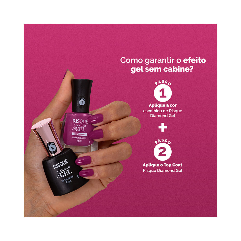 | Esmalte Risqué Diamond Gel Nova Cor Macaron de Amora este produto | R$ 15,90 | — | 5.0/5 | 10 |