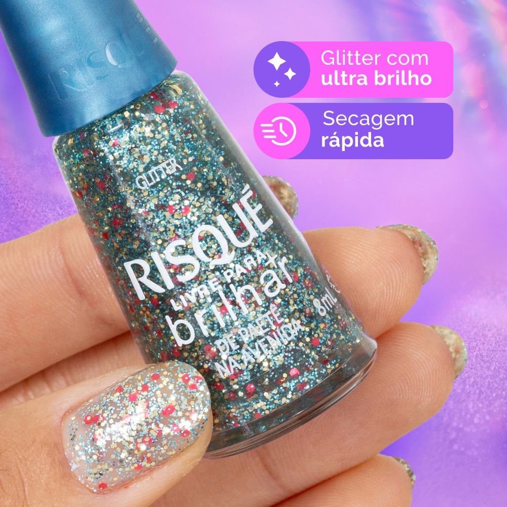 Deixe suas unhas brilharem como nunca! Apresente um toque de glamour e diversão ao seu look com o esmalte Risqué Livre Para Brilhar - De Paetê na Avenida. Uma explosão de glitter e sofisticação que tr
