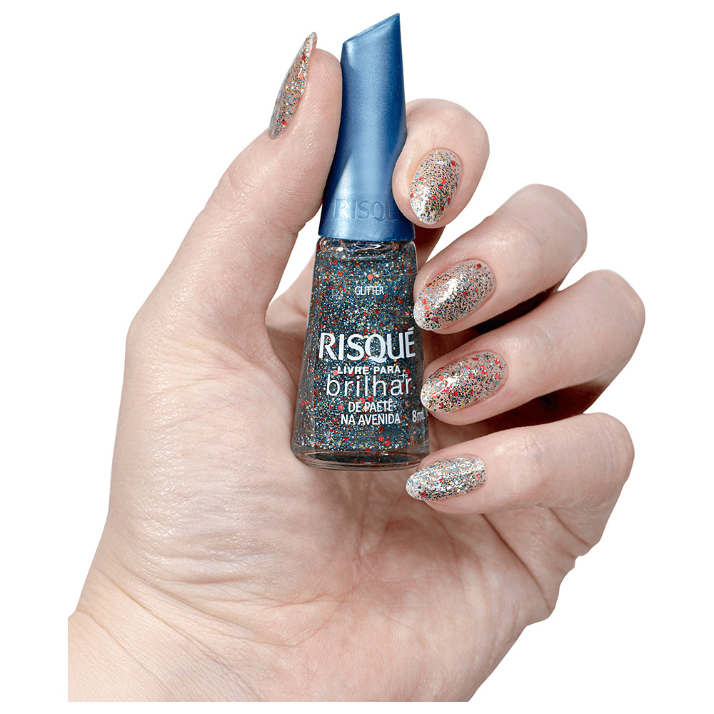 Esmalte Risqué Livre para Brilhar Glitter Azul De Paetê na Avenida