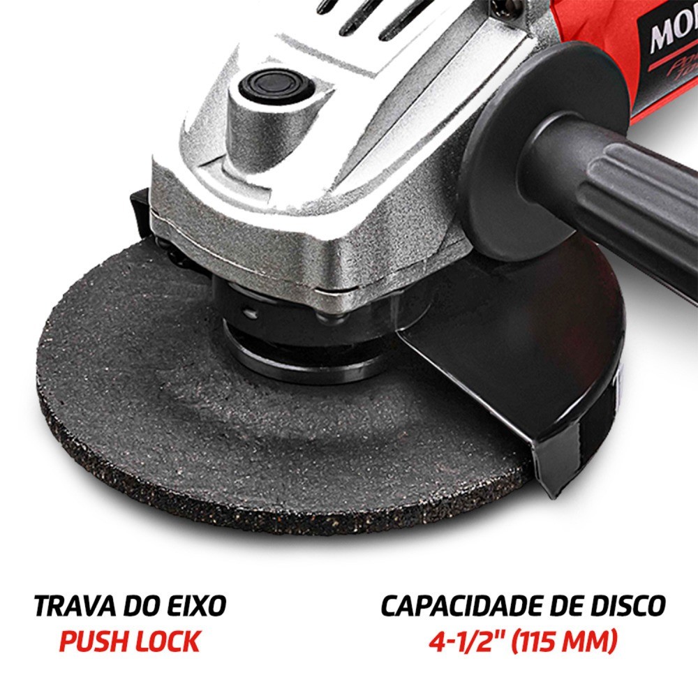 Produto: Esmerilhadeira angular 4.1/2pol 850 watts - FES-02 - Mondial Marca: Mondial Descrição: A Esmerilhadeira angular 4.1/2" 850 watts FES-02 da Mondial é uma ferramenta poderosa e eficiente, projetada para superar suas expectativas em trabalhos de corte, desbaste e polimento. Com um motor de 850 watts e capacidade para atingir até 11.000 Rotações por Minuto, esta esmerilhadeira oferece uma performance impressionante para os mais variados projetos. A Esmerilhadeira Angular FES-02 da Mondial é a ferramenta certa para profissionais e entusiastas que não abrem mão de eficiência e segurança. Características: - POTÊNCIA E VELOCIDADE: A ferramenta tem motor de 850W e chega a 11.000 Rotações por Minuto; - CAPACIDADE DE DISCO: A FES-02 tem Capacidade de Disco de 4-1/2"" (115 mm); - TRAVA DO EIXO: A Trava do Eixo Push Lock permite que você troque o disco de forma mais fácil, além de garantir sua segurança durante o uso; - MAIS SEGURANÇA: A função EMPUNHADURA LATERAL, com duas opções de posição, e o PROTETOR AJUSTÁVEL SEM CHAVE, proporcionam maior segurança na utilização da ferramenta; - BOTÃO LIGA/DESLIGA COM TRAVA: Com a trava, você não precisa segurar o botão liga/desliga para uso contínuo em trabalhos mais longos; - Comodidade: 1 ANO DE GARANTIA MONDIAL. Especificações: Potência: 850W Diâmetro do disco: 4.1/2" Velocidade: 11.000 rpm 100 % Rolamentada. Itens Inclusos: Disco abrasivo Dimensões (C x L x A): 11.40 x 29.00 x 10.80 centímetros Peso: 1.50 Kg