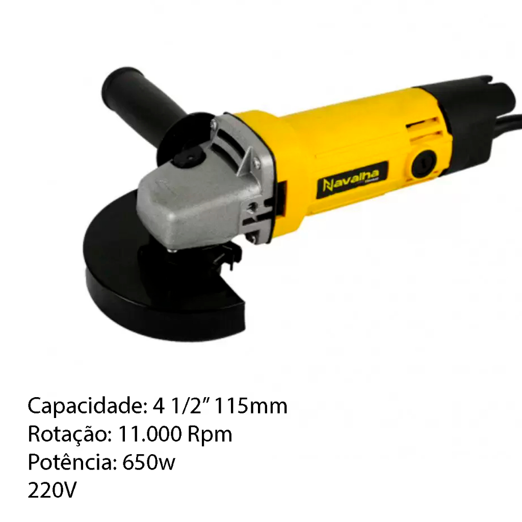 Esmerilhadeira Angular 650W 110V - 220V 4.1/2Pol. Compacta Resistente Potente Profissional