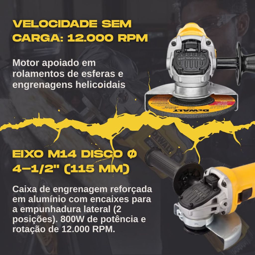 Esmerilhadeira Angular Dewalt Dwe4020 800 W Cor Amarelo Frequência 60 Hz 110V