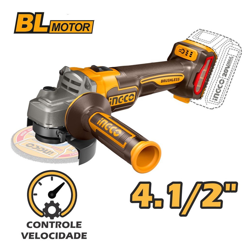 Esmerilhadeira Angular Profissional Sem Fio 4½” Com Bateria 4.0Ah e Carregador Industrial Ingco 20V
