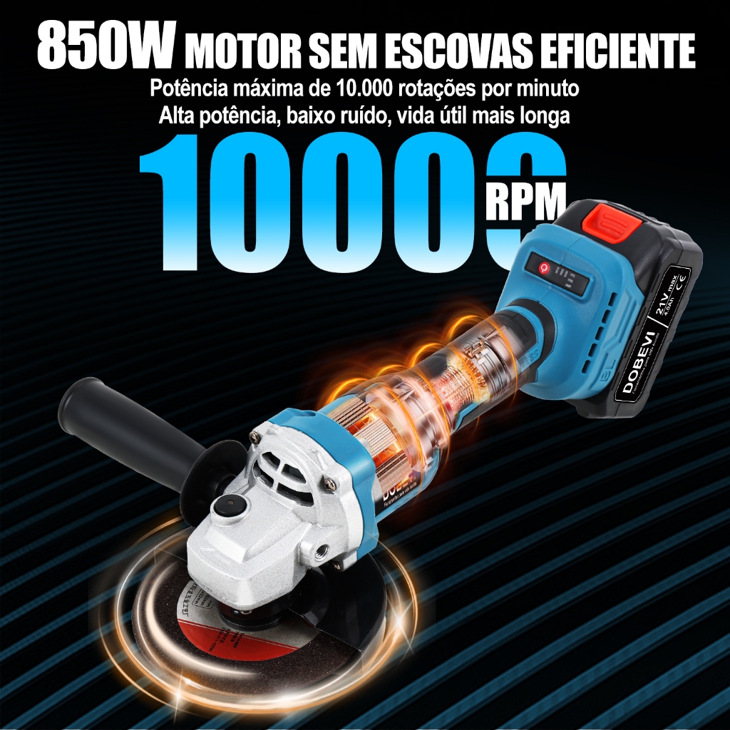 Esmerilhadeira lixadeira angular 125mm 850w 10000rpm Dobevi motor potente de 10.000 RPM e 3 velocidades variáveis