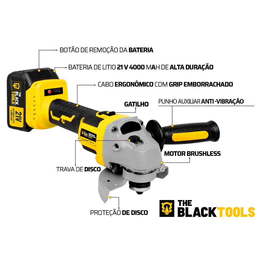 Esmerilhadeira Lixadeira Angular 21v The Black Tools + Chave De Impacto Profissional A Bateria