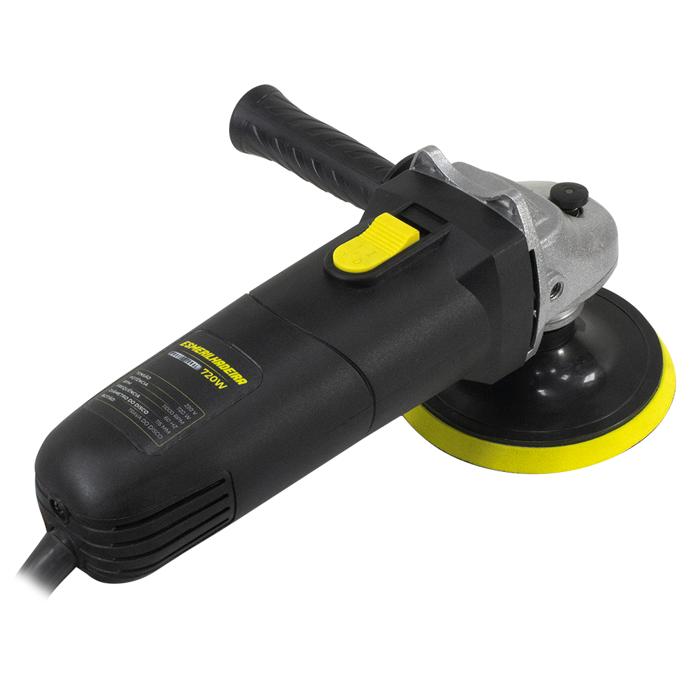 Esmerilhadeira 720W 127V V8 Brasil ESPECIFICAÇÕES TÉCNICAS: :: Tensão de entrada 127V :: Potência 946W :: Frequência de entrada 60Hz :: Rotação por minuto 11000 :: Peso 1,8 Kg :: Dimensões (C x L x A) 30,5 x 12,5 x 12 cm :: Comprimento do cabo de alimentação 1,8m ACOMPANHA: :: 1 punho auxiliar :: 1 chave de aperto :: 1 semicírculo de proteção anti-fagulhas :: 6 discos de lixa P80 :: 1 suporte/disco de borracha com velcro