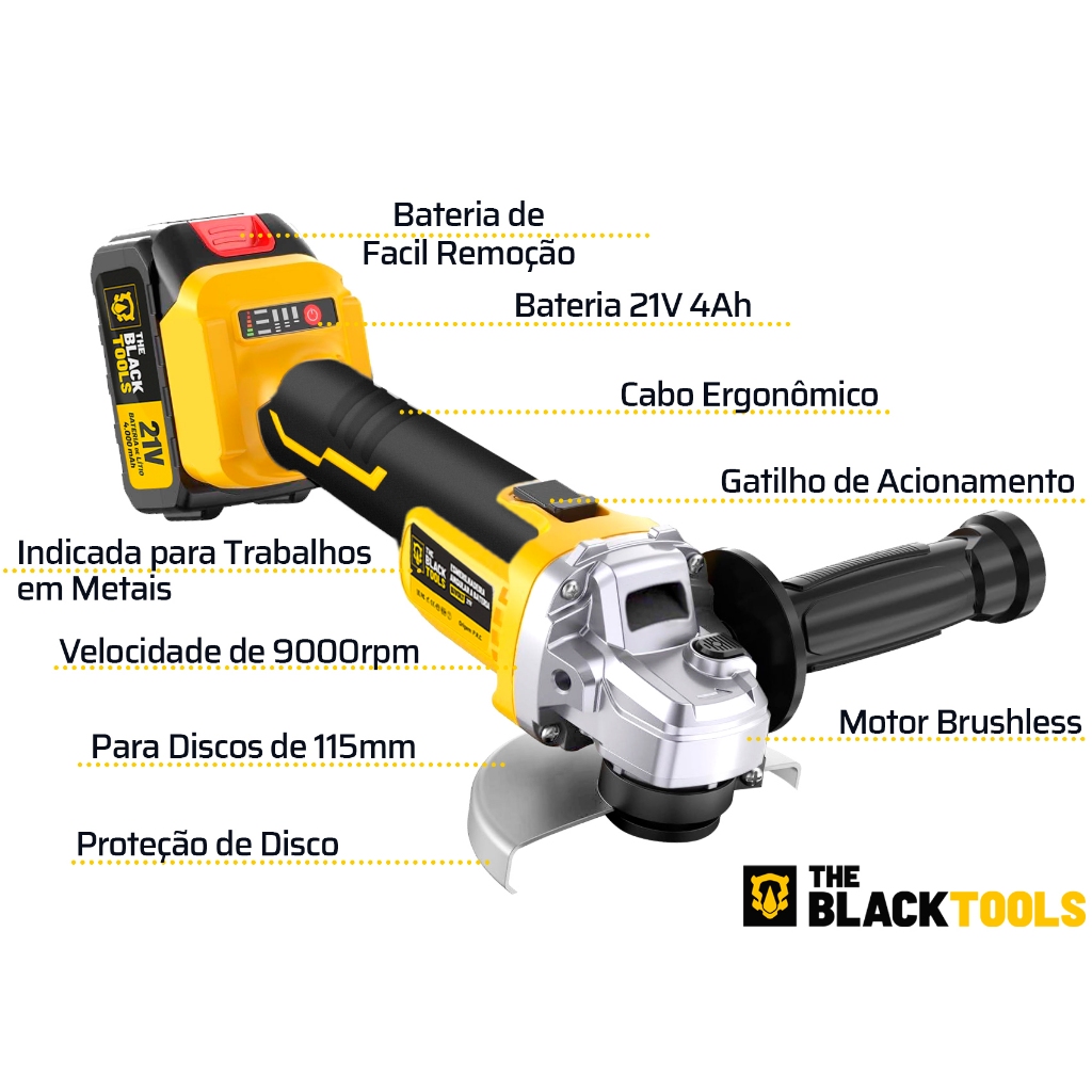 Esmerilhadeira Lixadeira Angular Sem Fio A Bateria 4000mah 4.1/2 125mm The Black Tools