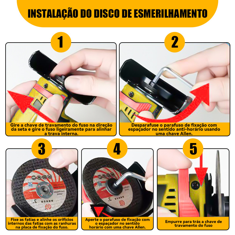 Benefícios que você ama: Liberação sem fio: Diga adeus aos cordões e cabos! Bateria recarregável de longa duração, nunca mais ficará no escuro durante um trabalho. Desempenho incrível: Com uma tensão de 12V e capacidade de bateria de 1500mAh, nosso Angle Sander oferece poderoso desempenho para manusear qualquer tarefa de acabamento, lixamento e polimento. Velocidade ilimitada: Com uma velocidade ilimitada de 18500 rpm ilimitada: Com uma velocidade ilimitada de 18500 rpm, você poderá completar seus projetos com rapidez e precisão. Design ergonômico: Adeus à fadiga! O design ergonômico dessa lixadeira faz uso diário menos cansado, permitindo que você trabalhe confortavelmente e eficientemente. Transporte fácil: Não se preocupe com o transporte. Incluímos um estojo prático para que você possa levar seu moedor de ângulo para qualquer lugar com facilidade. Detalhes técnicos da marca da marca: Tensão da Bateria: 12V Capacidade da bateria: 1500mAh Velocidade não bloqueadora: 18500 rpm Rosca do eixo de moagem da linha do eixo: M5 Diâmetro do furo do diâmetro do furo: 10,0 mm Velocidade Nominal: 10.000/min Diâmetro máximo: 76mm 1.Itens inclusos: Moedor de ângulo de ângulo [12V] 1x Chave Torx 1x carregador 1 x Discos de Corte (Metal) Pilhas 1x 12V 2.Itens inclusos: Moedor de ângulo de 1x [12V] 1x Chave Torx 1x carregador 3x Discos de Corte (Metal) Baterias de 12V de 12V