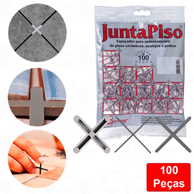 COMERCIAL VIPASA DISTRIBUIDORA Espaçador Junta Para Assentamento Pisos Revestimentos Paredes Geral Com 100 Peças 1mm - 4mm - CORTAG Espaçador para assentamento de pisos, revestimentos cerâmicos, porcelanatos e pedras. Proporciona assentamento alinhado. Reduz o tempo de assentamento. Evita a possível dilatação das peças cerâmicas. O espaçador de juntas para assentamento de pisos e revestimentos de paredes em geral é uma ferramenta essencial utilizada durante a instalação de pisos e revestimentos para garantir um espaçamento uniforme entre as peças. detalhada do espaçador de juntas com 100 unidades, na faixa de espessura de 1mm a 4mm, da marca Cortag: Material de Fabricação: Os espaçadores de juntas são fabricados com materiais resistentes, geralmente plástico ou borracha, que proporcionam durabilidade e resistência ao desgaste durante o processo de instalação. Quantidade: Este conjunto inclui 100 unidades de espaçadores de juntas, o que é ideal para projetos de pequeno a médio porte. Espessura Variável: Os espaçadores de juntas neste conjunto são projetados para oferecer uma variedade de espessuras, variando de 1mm a 4mm. Isso permite aos instaladores escolher o espaçamento desejado entre as peças, dependendo das especificações do projeto e do tamanho das juntas desejadas. Compatibilidade: Os espaçadores de juntas são projetados para serem compatíveis com uma ampla variedade de pisos e revestimentos de parede, incluindo cerâmica, porcelanato, azulejos, pedra natural e outros materiais similares. Facilidade de Uso: Os espaçadores de juntas são fáceis de usar e podem ser inseridos entre as peças durante o processo de assentamento. Eles ajudam a manter um espaçamento uniforme e consistente entre as peças, resultando em um acabamento esteticamente agradável. Redução de Riscos: Além de manter o espaçamento adequado entre as peças, os espaçadores de juntas também ajudam a evitar que as peças se movam ou deslizem durante o processo de secagem do material de assentamento, o que pode reduzir o risco de desalinhamento ou quebras. Aplicações: Esses espaçadores de juntas são adequados para uma variedade de aplicações, incluindo instalação de pisos em ambientes residenciais, comerciais e industriais, bem como revestimentos de paredes em cozinhas, banheiros, áreas externas e muito mais. O espaçador de juntas para assentamento de pisos e revestimentos de paredes oferece uma solução eficaz e conveniente para garantir um espaçamento uniforme e consistente entre as peças durante o processo de instalação, resultando em um acabamento de alta qualidade e durabilidade. COMERCIAL VIPASA DISTRIBUIDORA
