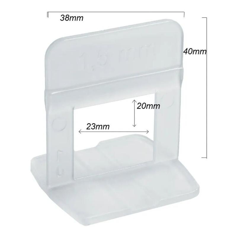 Espaçador Nivelador Assentamento de Piso 1,0 MM Pacote com 50 Unidades 60693 CORTAG CONTEUDO DA EMBALAGEM: 50 UNID. Espaçador Nivelador de Revestimentos 1mm - Cortag – 60693 DESCRIÇÃO: Clips com base que auxilia no nivelamento de piso, revestimentos cerâmicos e porcelanato, desenvolvido para auxiliar no nivelamento e espaçamento uniforme na aplicação , garantindo instalação sem dentes, ressaltos e diferença de espaço entre as peças, assegurando ótimo acabamento final e você ainda ganha tempo e produtividade na obra minimizando o tempo de aplicação. Acessório para uso no reaproveitamentos das cunhas do sistema de nivelamento de pisos e porcelanatos Compatível com outras marcas: Diamond e Moldimplas Max ESPECIFICAÇÕES TÉCNICAS: Fabricante: Cortag Ref: 60693 Espessura: 1mm Reutilização: Descartável Cor: Transparente Medidas externas Largura: 38mm Altura: 40mm Medidas internas (vão da cunha) Largura: 23mm Altura: 20mm Base 35 x 38 mm Código de Fábrica: 60693 Marca: CORTAG Garantia: 3 meses * Imagens meramente ilustrativas.