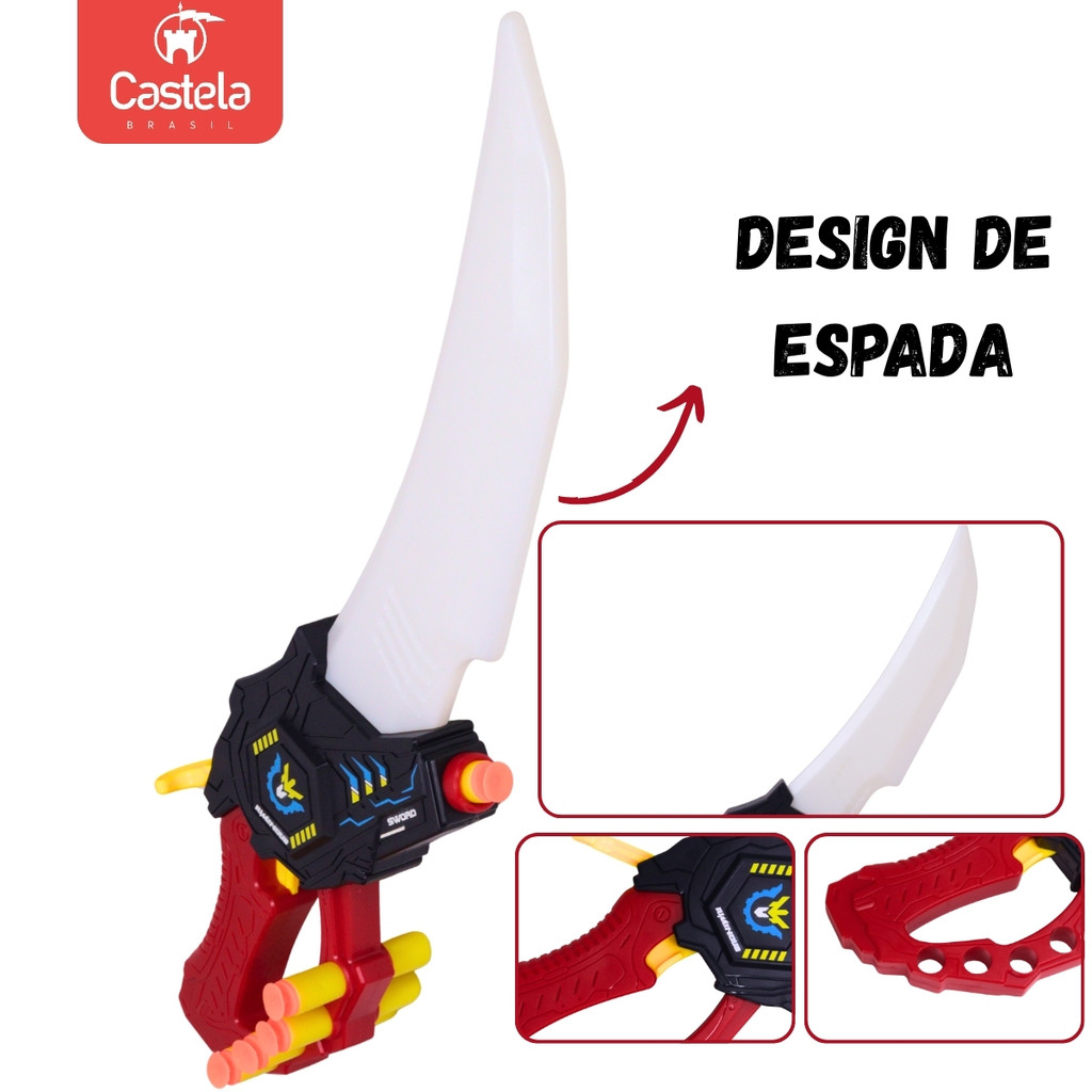 Espada Lançador de Dardos Vermelho Som Luz Manual - Castela