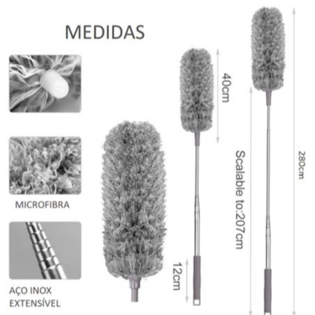 Itens inclusos: - 1 Espanador - 1 Cabo Extensível até 2,80mts Novidade no mercado! Apresentamos inovador "Espanador Retrátil longo alcance de Microfibra", uma ferramenta de limpeza revolucionária que mudará a maneira como você mantém sua casa impecável. A microfibra é um material altamente eficaz para limpeza sem danificar qualquer superfície. Este espanador foi especialmente projetado para aproveitar ao máximo seus benefícios. A microfibra possui uma capacidade de absorção: A microfibra possui uma estrutura muito fina e densa que permite absorver uma grande quantidade de líquido e reter poeira e partículas de sujeira de forma eficaz. Isso significa que nosso espanador de microfibra pode coletar poeira e sujeira com facilidade, deixando suas superfícies totalmente limpas (ele não espalha a poeira, ele absorve a sujeira). Não risca superfícies: Ao contrário de outros materiais de limpeza mais agressivos, a microfibra é macia e não abrasiva. Isso significa que você pode limpar móveis, paredes e outras superfícies sem se preocupar em arranhá-los ou danificá-los. Remoção eficiente de poeira: A estrutura especial da microfibra permite reter e reter efetivamente a poeira, em vez de simplesmente redistribuí-la no ar. Isso torna nosso espanador de microfibra ideal para pessoas alérgicas ou sensíveis ao pó. Durabilidade e Reutilização: A microfibra é um material durável que pode suportar vários ciclos de lavagem sem perder sua eficácia. Isto significa que a nossa escova de microfibra é um investimento a longo prazo, pois pode reutilizá-la continuamente após cada lavagem. Basta lavar o espalhador com água e deixar secar ao ar. Pronto para usar novamente! Resumindo, a microfibra é um material versátil e altamente eficaz para limpeza, e o espanador retrátil de microfibra aproveita ao máximo seus benefícios para proporcionar uma limpeza perfeita e sem esforço em toda a sua casa.