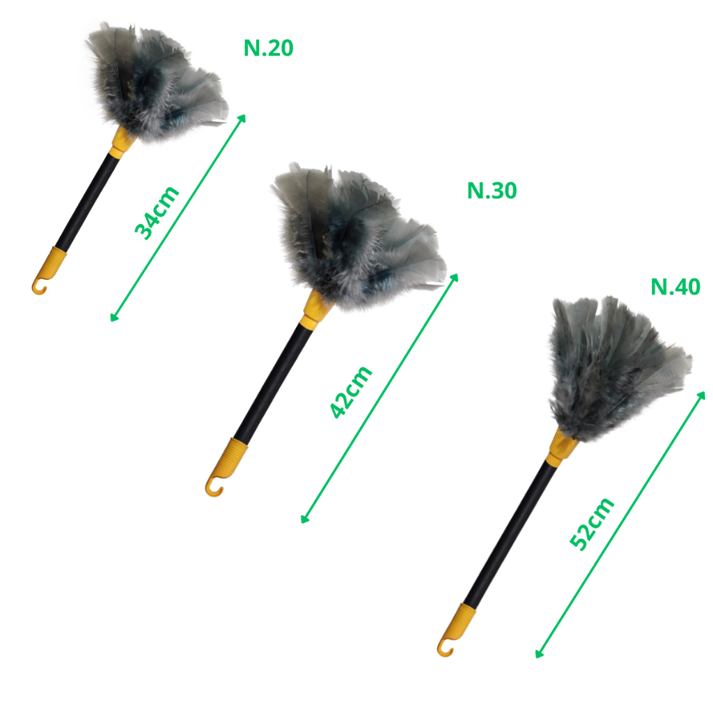 Os espanadores removem o pó e são indicados para limpeza em geral.São ótimos para limpeza simples de móveis, carros, computadores, até locais de difícil acesso como prateleiras de lojas, vitrines, limpeza de cristais, lustres, etc. S - Cerdas Macias, penas naturais de Peru - Cerdas sintéticas oferecem maior durabilidade do produto - Substitui o uso de panos e utensílios - Maior volume de cerdas - Cabos mais longos - Utilização em móvies, computadores, vitrines, prateleiras e automóveis COMPRIMENTOS: Color 20 - 34CM Color 30 - 42CM