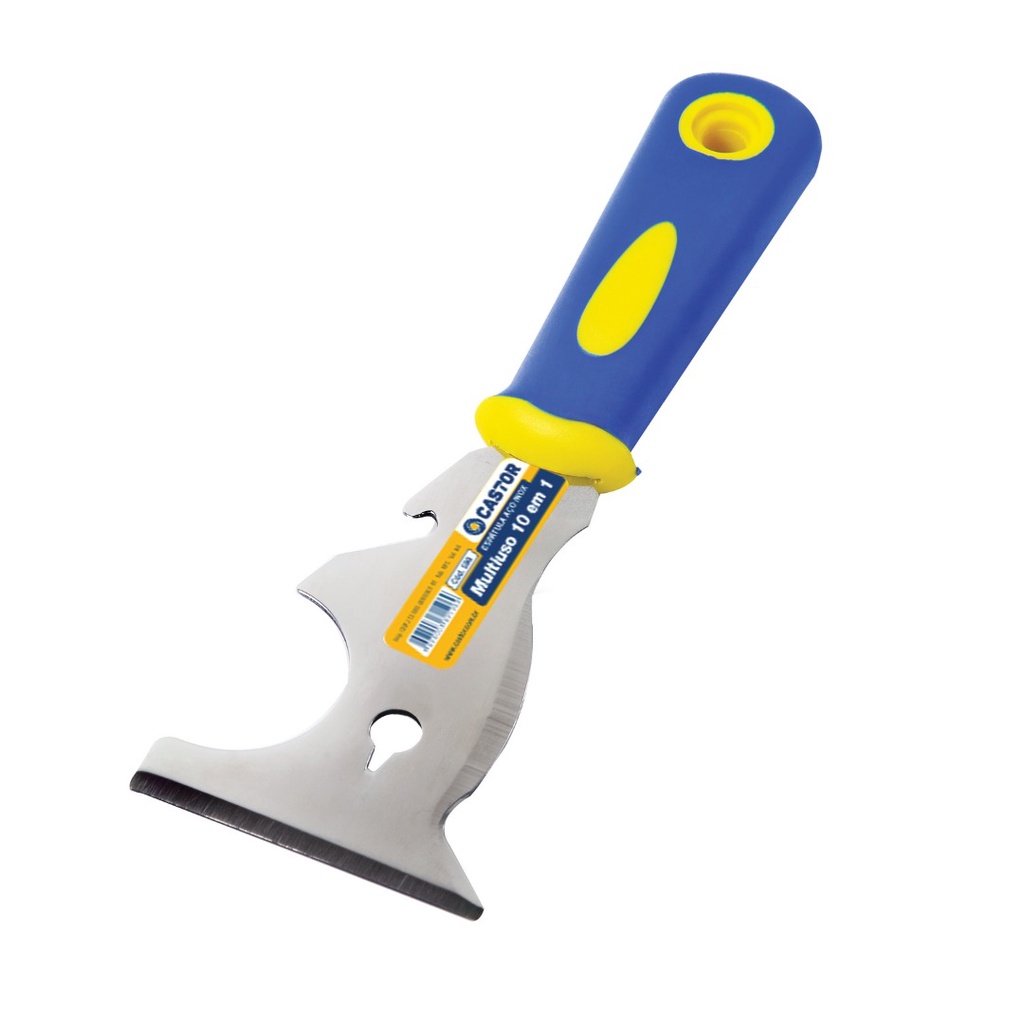 Fabricada em Aço Inox e com cabo emborrachado, a Espátula Multiuso da Castor é a única no mercado a ter 10 funções para trazer praticidade e conforto em seus trabalhos. Abre tampas, rasga latas, raspa paredes, tira pregos, limpa rolos, raspa tinta, abre trincas, fura tudo, corta tampa e aplica massa. CARACTERÍSTICAS Material da chapa: Aço Inox Material do Cabo: Borracha Uso Indicado: Multifuncional, essencial para limpeza, preparo e revestimento de superfícies, manuseio e aplicação dos mais variados produtos como massas (corrida, grossa, fina), colas, resinas (acrílicas, vinílicas) e texturas. Código do fabricante: 598 Limpeza e conservação: Logo após o uso, retirar os resíduos do produto utilizado. Produtos à base de água, lavar com água e sabão. Produtos sintéticos, lavar com solvente adequado e depois com água e sabão. Secar bem e guardar em local arejado. FERRAMENTAS QUE GARANTEM RESULTADOS PRECISOS Perfeição e versatilidade, tudo o que você precisa em uma só ferramenta. A Castor selecionou as melhores e mais resistentes espátulas para você. Tudo para facilitar a sua vida! SEGURANÇA Compre com segurança! Nossa equipe de suporte estará à disposição caso tenha algum problema ou dúvida. Aguardamos seu pedido!