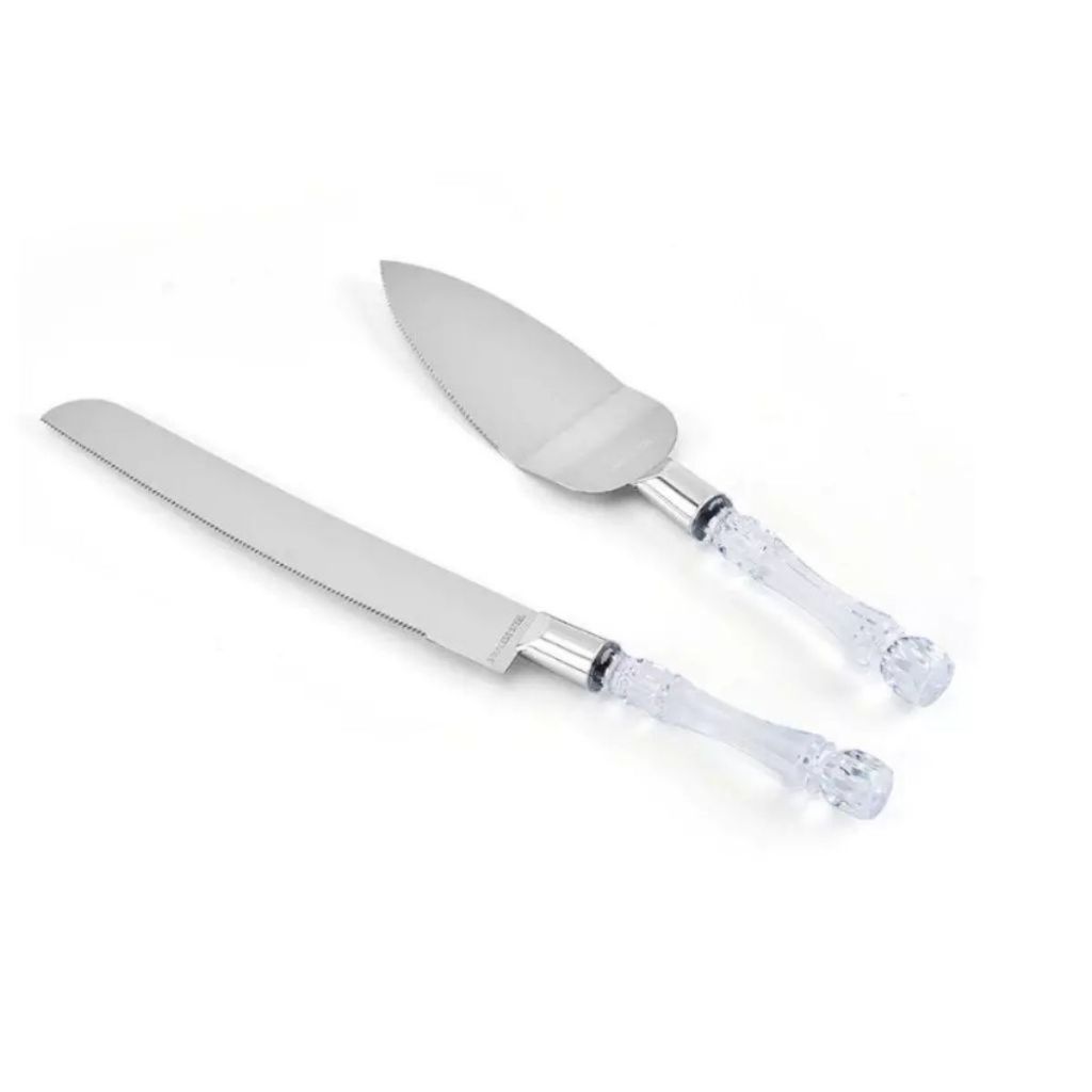 Espátula e Faca Para Bolo cabo Cristal ou Carmim conjunto 2 peças