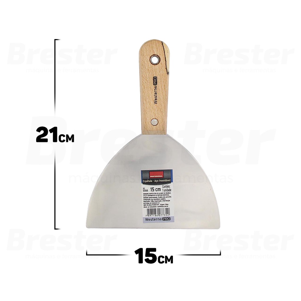 Olá, Bem vindo a Distribuidora Brester. Trabalhamos com uma grande variedade em ferramentas elétricas e manuais, descartáveis, eletroeletrônicos, artigos para casa, artigos de petshop e outros. Aqui você encontrará Produtos Originais, Nota Fiscal, Pronta Entrega e Envio Imediato! * Características do produto * Espátula Para Pedreiro Em Aço Inoxidável E Cabo De Madeira Venha conhecer a qualidade e durabilidade da Espátula 150mm da Western! É o produto ideal para aplicação de massas e gesso em geral, produzido com material de alta qualidade. A lâmina é feita de aço inoxidável resistente, com cabo em madeira para maior conforto e segurança. O design moderno e ergonômico garante uma aplicação precisa e segura para os seus trabalhos. A Western oferece a melhor qualidade e durabilidade nos seus produtos, para que você não precise se preocupar com as aplicações. Não perca mais tempo e aproveite as vantagens de ter a Espátula 150mm da Western! Aproveite e compre já a sua! Características: > Cabo em madeira para maior conforto; > Utilizado para aplicação de massas e gessos; > Produto de alta resistência; Informações Técnicas: > Material: Aço inoxidável e madeira; > Cor: Cabo Marrom; > Tipo de Embalagem: Saco Plástico; > Contém: 1 Unidade; > Dimensões do Produto (C x L x A): 21cm x 15cm x 1,6cm; > Peso: 0,300kg; - Marca:Western - Garantia: 90 dias contra defeitos de fabricação Vantagens de comprar na Brester: - Nota fiscal para Pessoa Física e Pessoa Jurídica. - Produto novo, com garantia de fábrica. - Produto a pronta entrega. - Envio em até 24hs em dias úteis após confirmação do pagamento. Obrigado por escolher a Brester Máquinas.