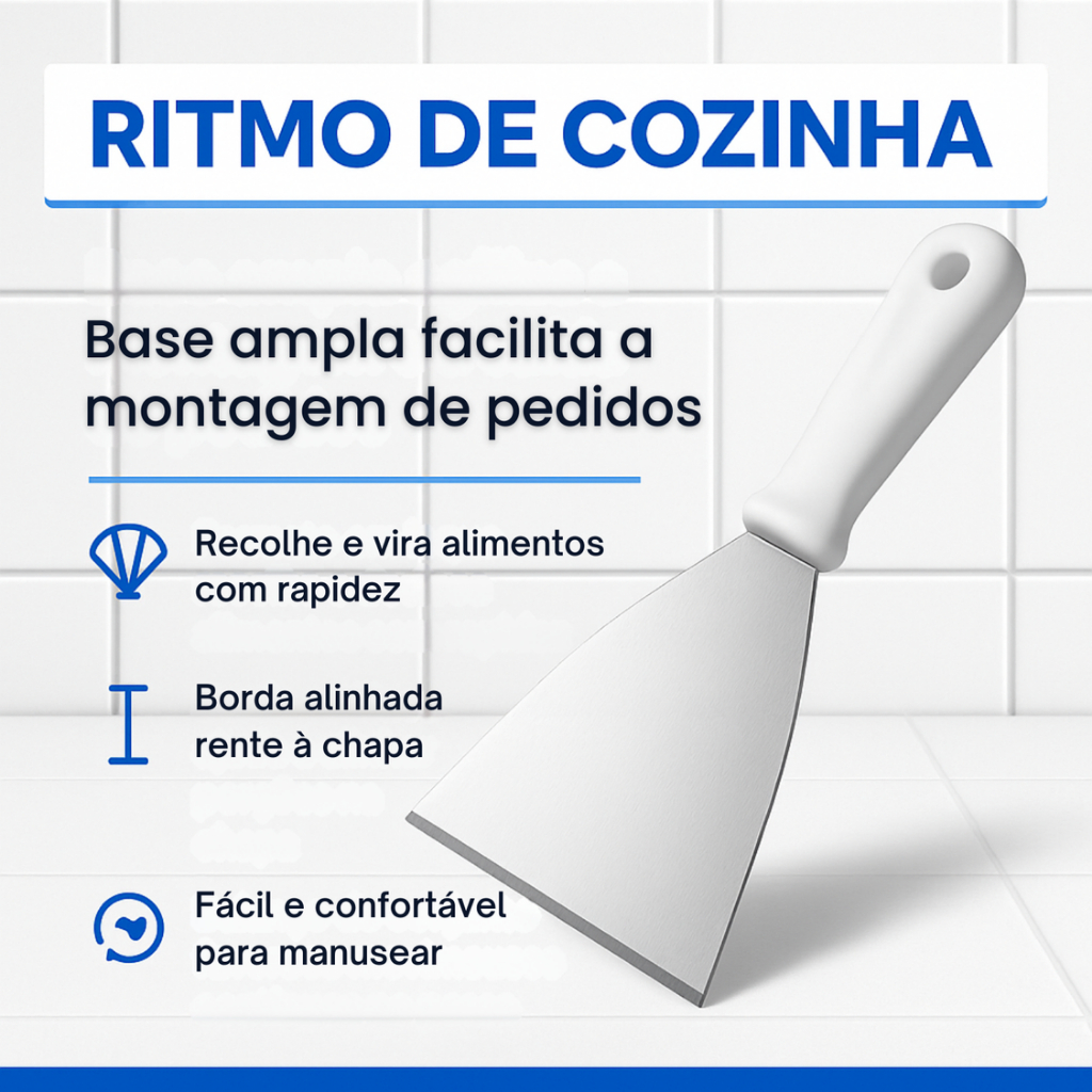Espatula Para Chapa Premium Reta 5" Original Inox Para Lanches Chapa Cozinha Chapeiro Lanchonete