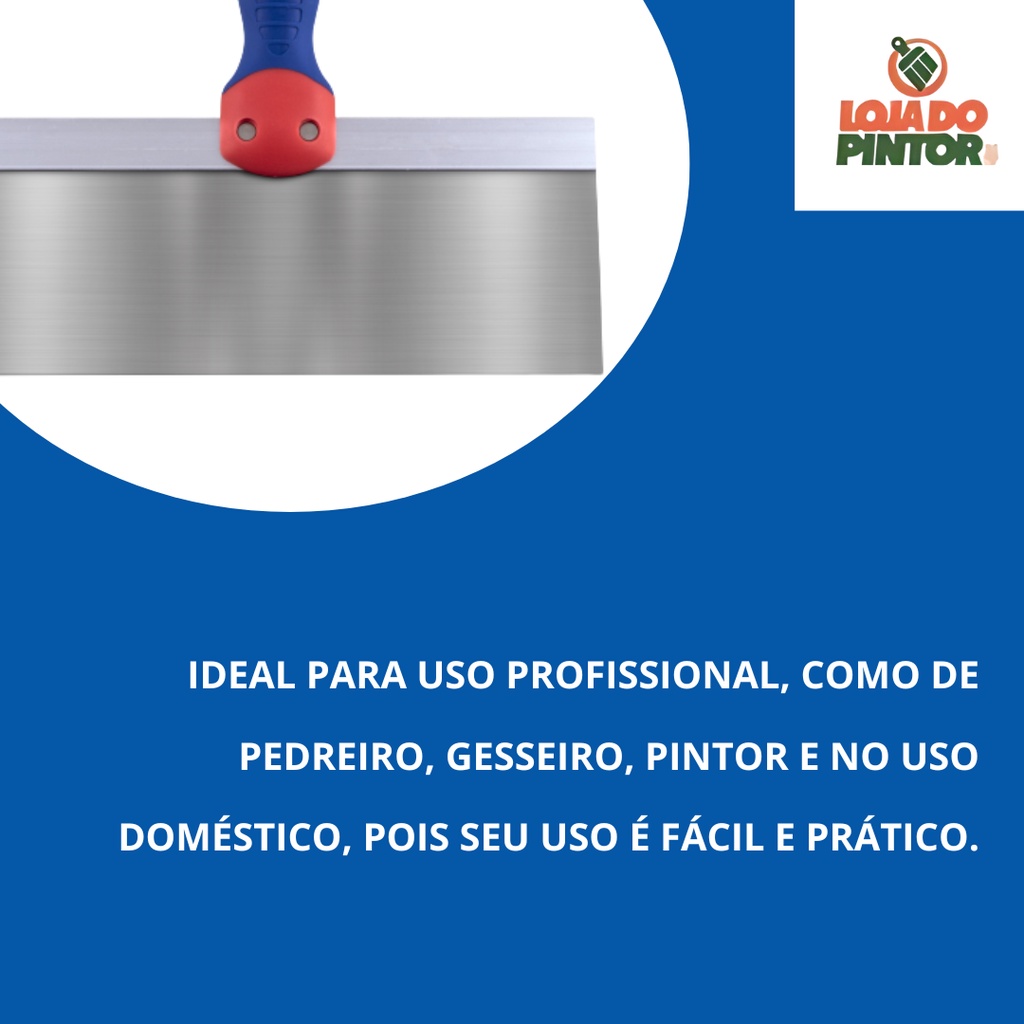 A Espátula pode ser usada em diversos procedimentos de reforma, construção, acabamento entre outros. Ideal para aplicação de gesso, cola plástica, massa corrida e também no processo de raspagem e outros serviços. Ideal para o uso profissional, como de pedreiro, gesseiro, pintor entre outros, e também no uso doméstico, pois seu uso é fácil e prático.