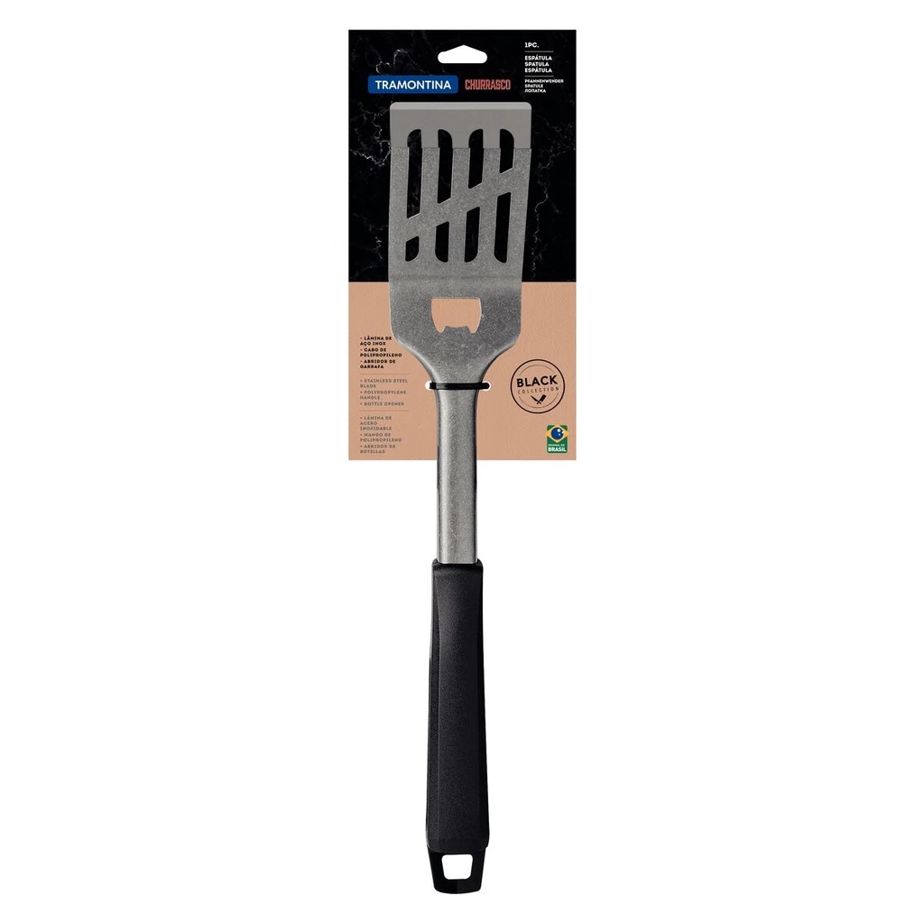 Espátula Tramontina Churrasco Black em Aço Inox e Cabo de Polipropileno Preto com Abridor de Garrafa - 26592100
