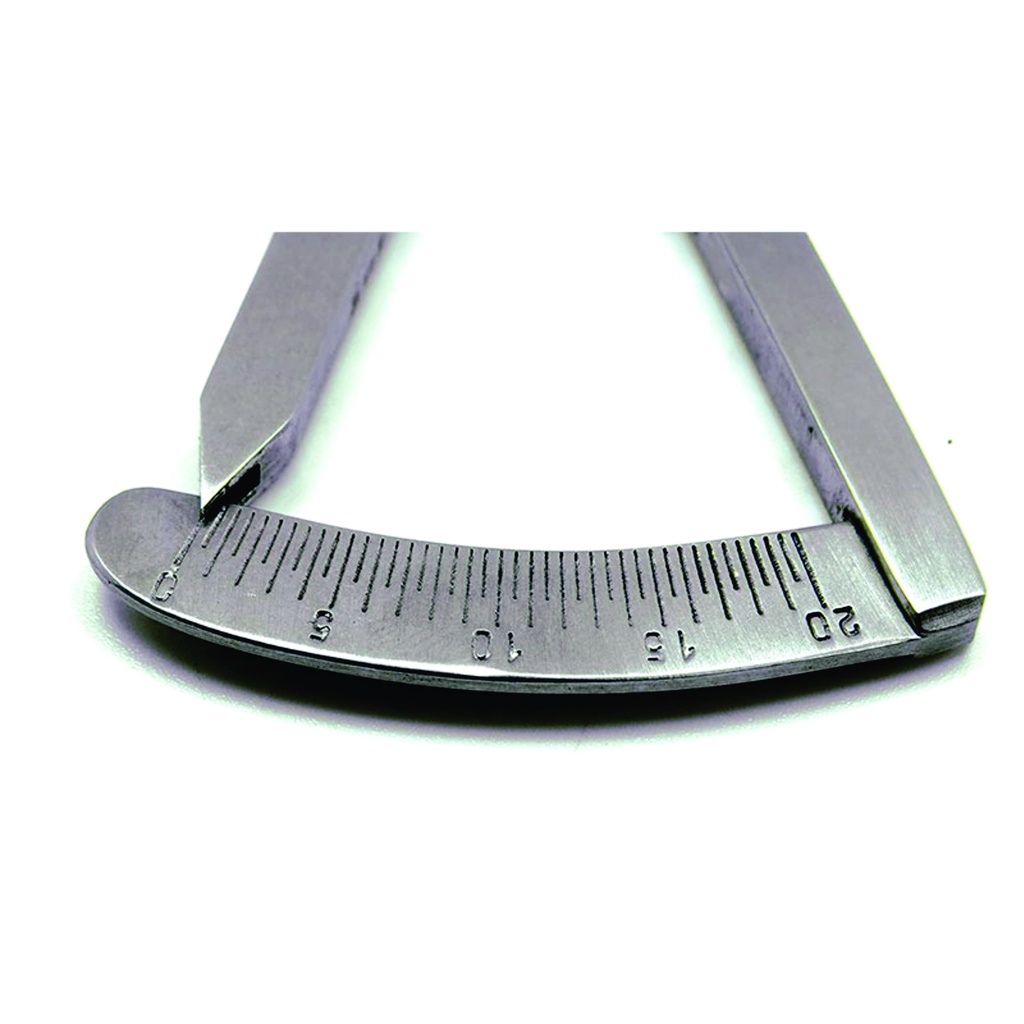 Especímetro De Aço Inox Medidor Sobrancelha Indicação: Indicado para prótese. Instrumento para medir. Utilizado para mensurações em geral. Características: Instrumento cirúrgico articulado não cortante. Produzido em aço inoxidável.