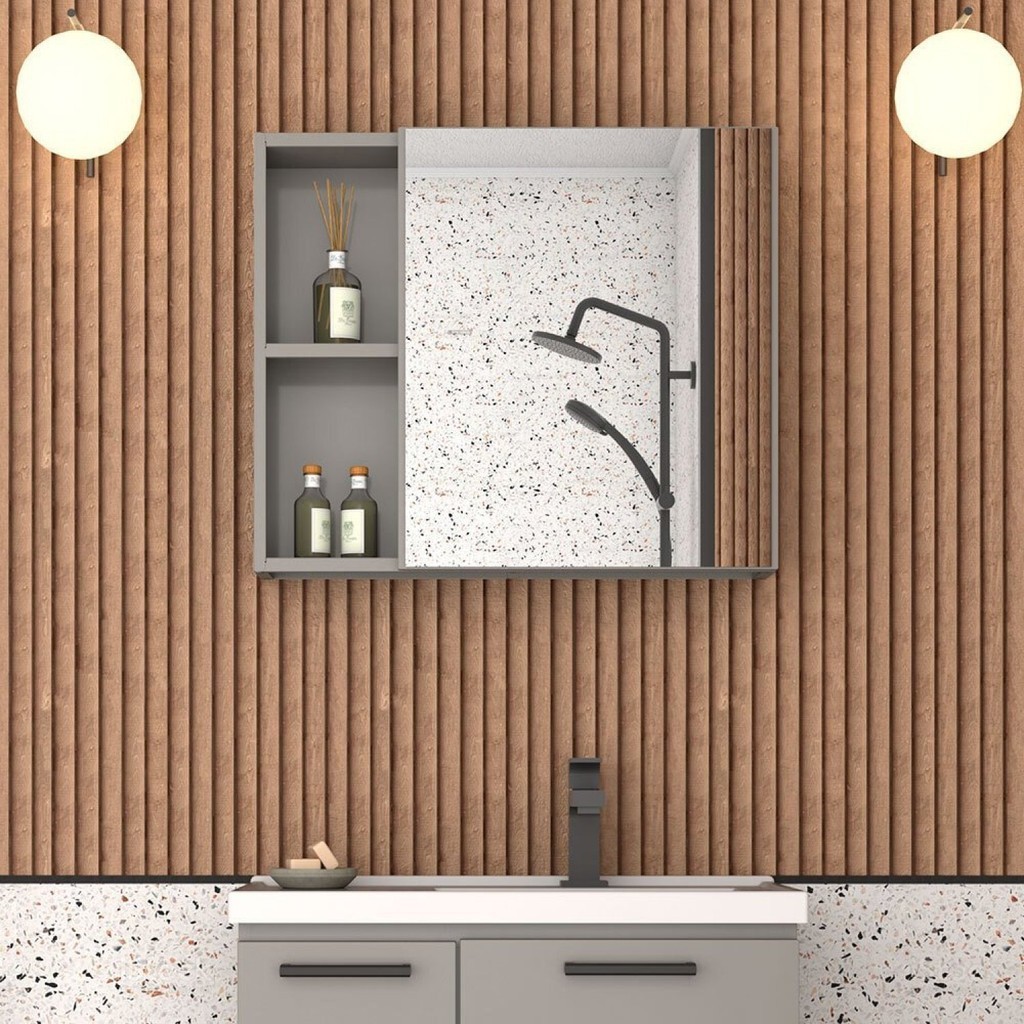 Espelheira para banheiro com Armário em Aço Ameixa Cinza