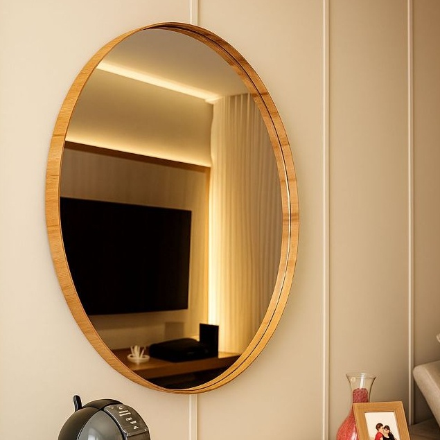 Espelho Adnet Redondo 80cm Grande para Baheiro Quarto Sala com Moldura em Madeira Cinamomo 𝘓𝘪𝘯𝘩𝘢 𝘗𝘳𝘦𝘮𝘪𝘶𝘮