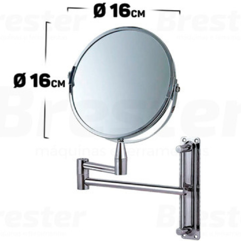 Espelho Articulado Cromado Giratório Dupla Face com Fixador para Parede