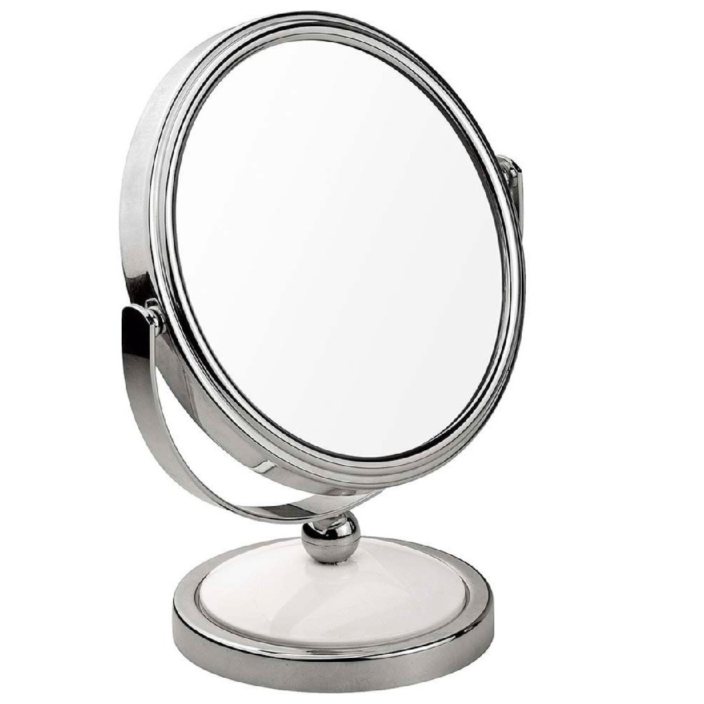 Produto ORIGINAL ! Alta Qualidade Satisfação TOTAL ou seu Dinheiro de Volta ! Evite Surpresas ! O Espelho de aumento dupla face Classic é ideal para quem tem pouco espaço e busca por um produto prático. Perfeito para garantir maior precisão na hora de fazer a barba, limpar a pele, colocar lentes de contato, depilar, remover sobrancelhas ou ao aplicar maquiagem, é portátil e pode ser levado para qualquer lugar. Com rotação de 360º, possui duas faces, uma com reflexo normal e a outra com ampliação da imagem refletida em até duas vezes. Inclui suporte de apoio para mesa para facilitar o uso. Composição do Produto: Estrutura em aço e espelho em vidro. Medida do suporte: Largura: 13,5cm Altura: 16,5cm Medida do espelho: Largura: 11cm