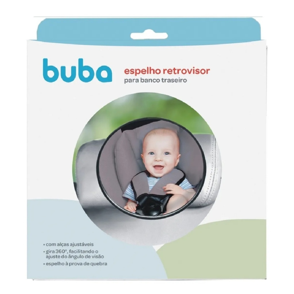 ESPELHO RETROVISOR PARA BANCO TRASEIRO O Espelho Retrovisor Para Banco Traseiro da Buba é o acessório ideal para manter a segurança do seu bebê durante os passeios de carro. Com um diâmetro de 18 cm e altura de 18 cm, este espelho redondo é adequado para bebês de 0 a 6 meses. Confeccionado em ABS, acrílico e polipropileno, apresenta resistência e durabilidade. As fixações em tiras proporcionam uma instalação fácil e segura no banco traseiro, permitindo que o bebê esteja sempre ao alcance da sua visão. DIMENSÕES: - Altura: 17,5 cm - Largura: 17,5 cm - Profundidade: 6 cm - Envio Imediato