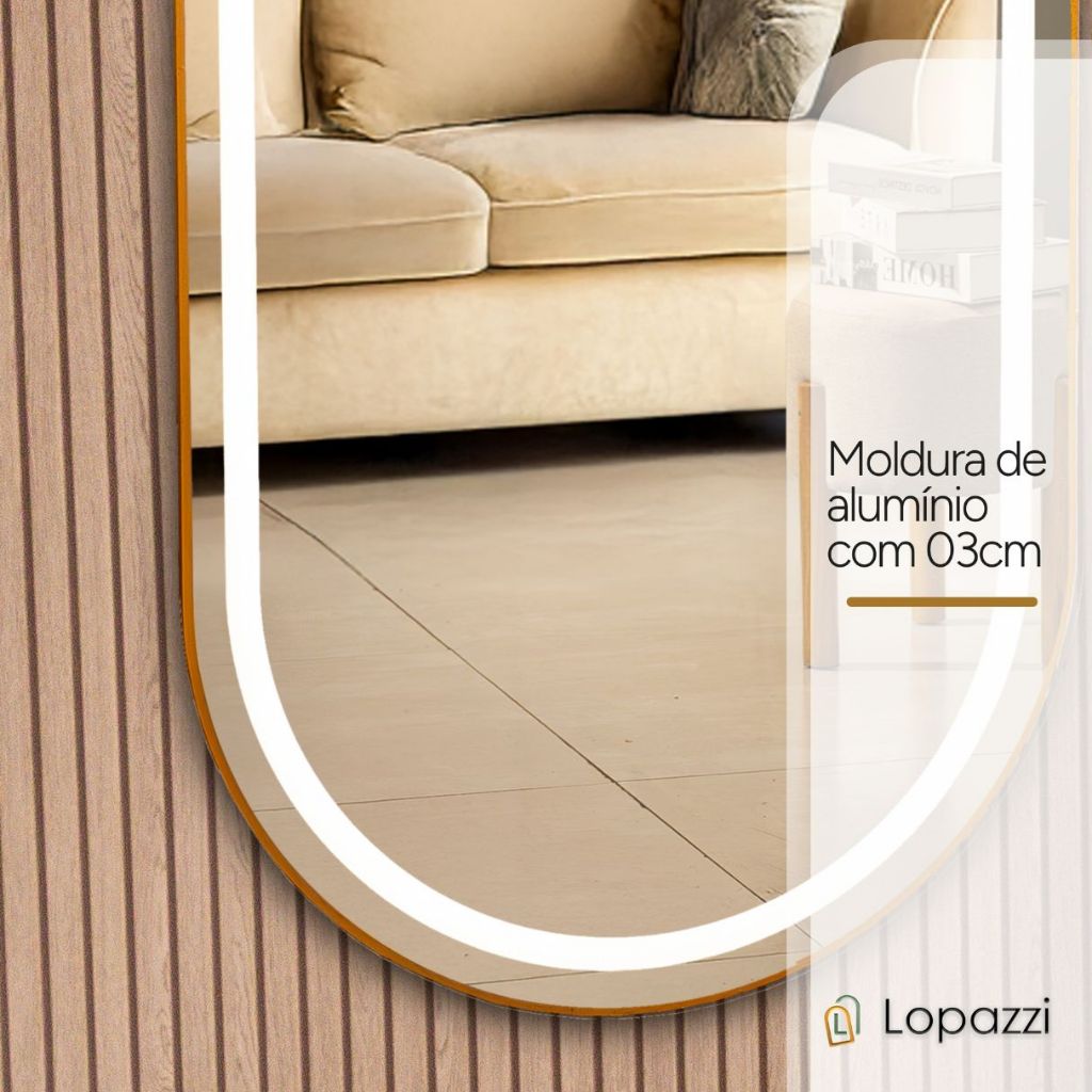 Detalhes que fazem com que os nossos produtos se diferenciem e destaquem, sendo reconhecidos e indicados pelos melhores arquitetos e designers. É um item de decoração atemporal e versátil, podendo compor diversos tipos de ambientes, como banheiros, salas, quartos, halls e espaços comerciais Os espelhos Oval agregam beleza e autenticidade e modernidade. Medindo 170cm de altura x 70cm de largura, se encaixa perfeitamente em quaisquer ambientes. Altura: 170cm Largura: 70cm Profundidade: 3,0cm Moldura em aço Espelho 3mm Pintura EPOX (Melhor e mais resistente que pintura automotiva) Iluminação LED com 3 opções de cor, todas no mesmo produto: 3000k/4500k/6500k Led Touch Suporte para parede Espelho da melhor qualidade do mercado NOSSA EMBALAGEM: - Os espelhos são cuidadosamente embalados pela nossa equipe. Utilizamos proteções nas bordas para que não haja nenhuma danificação no transporte e solicitamos o maior cuidado possível no manuseio para que o produto chegue perfeito ao seu endereço!!! DISTORÇÃO DE IMAGEM: O espelho não possui distorção de imagem :)