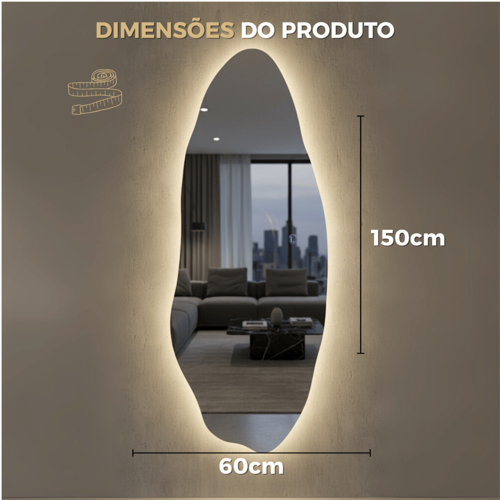 Espelho Corpo Inteiro Orgânico 150x60cm LED 3 Cores Maquiagem Look Do Dia Blogueira Vênus Lopazzi