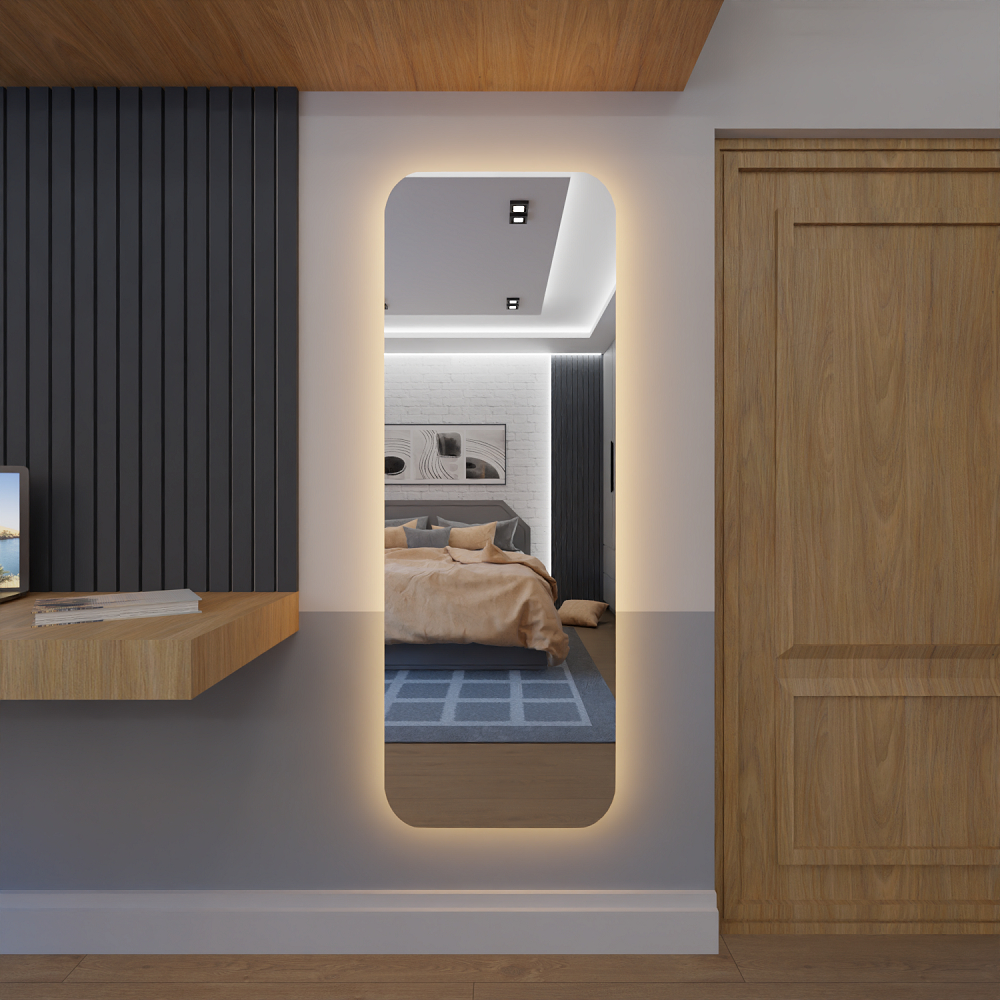 Espelho Corpo Inteiro Retangular Com Led 150cm x 60cm E14 Lançamento Quarto Sala Grande Moderno Luxo