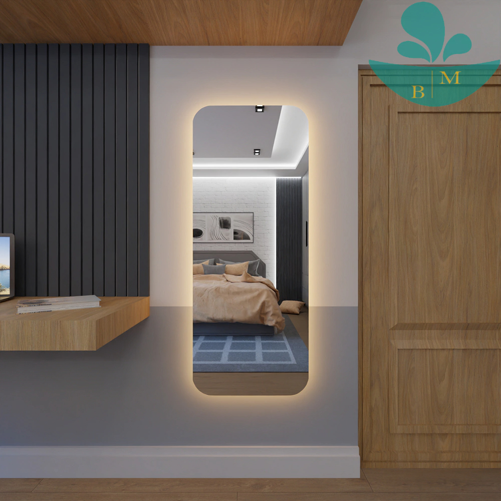 Espelho Corpo Inteiro Retangular Com Led 170cm x 70cm E14 Lançamento Quarto Sala Grande Moderno Luxo