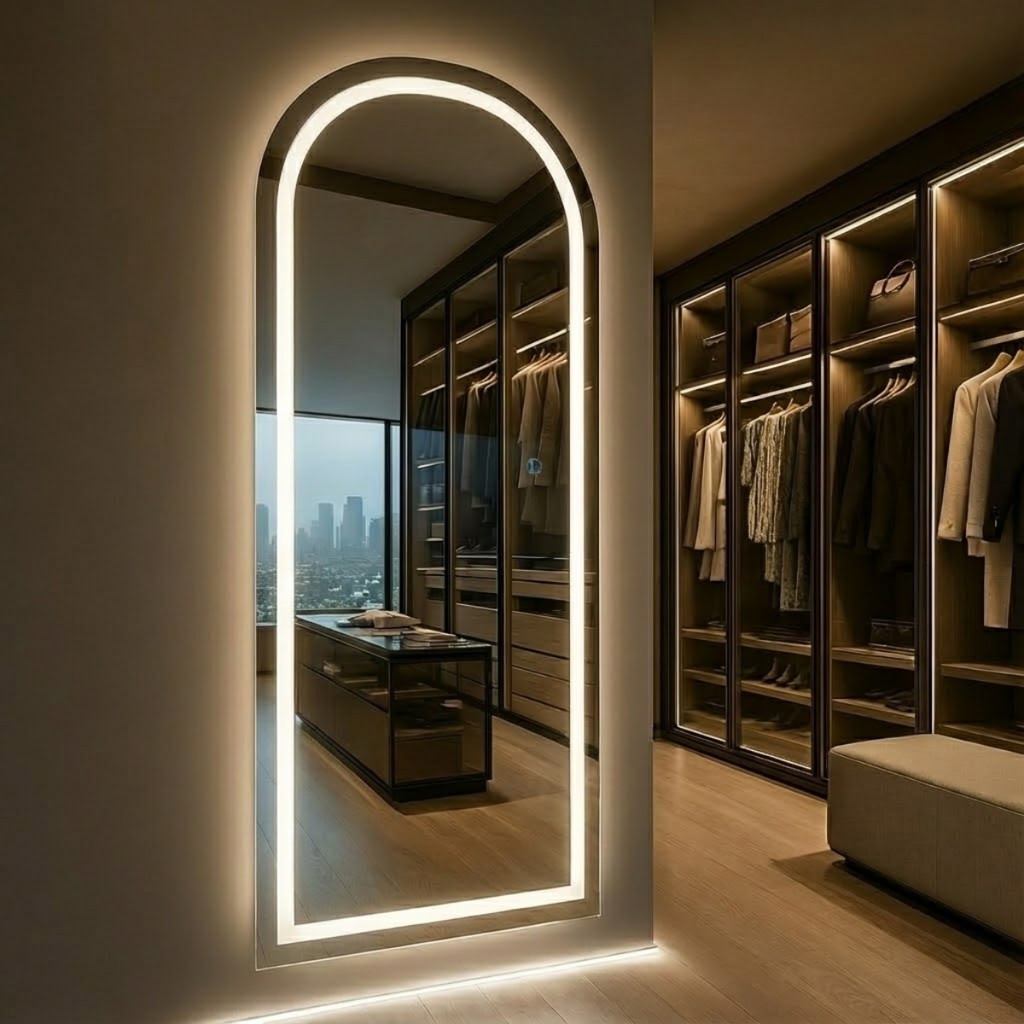 Espelho Curvado Arcos Oval Com LED 170x70 Grande Corpo Inteiro Touch Bivolt Luxo Tendência Decor