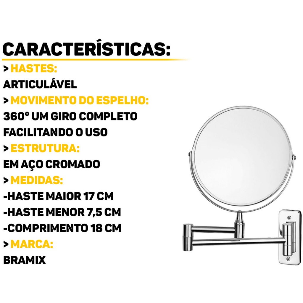 | Espelho De Aumento Articulado 3x Giratório 360º Dupla Face Maquiar ... este produto | R$ 78,90 | 18% | 4.9/5 | 2 |
