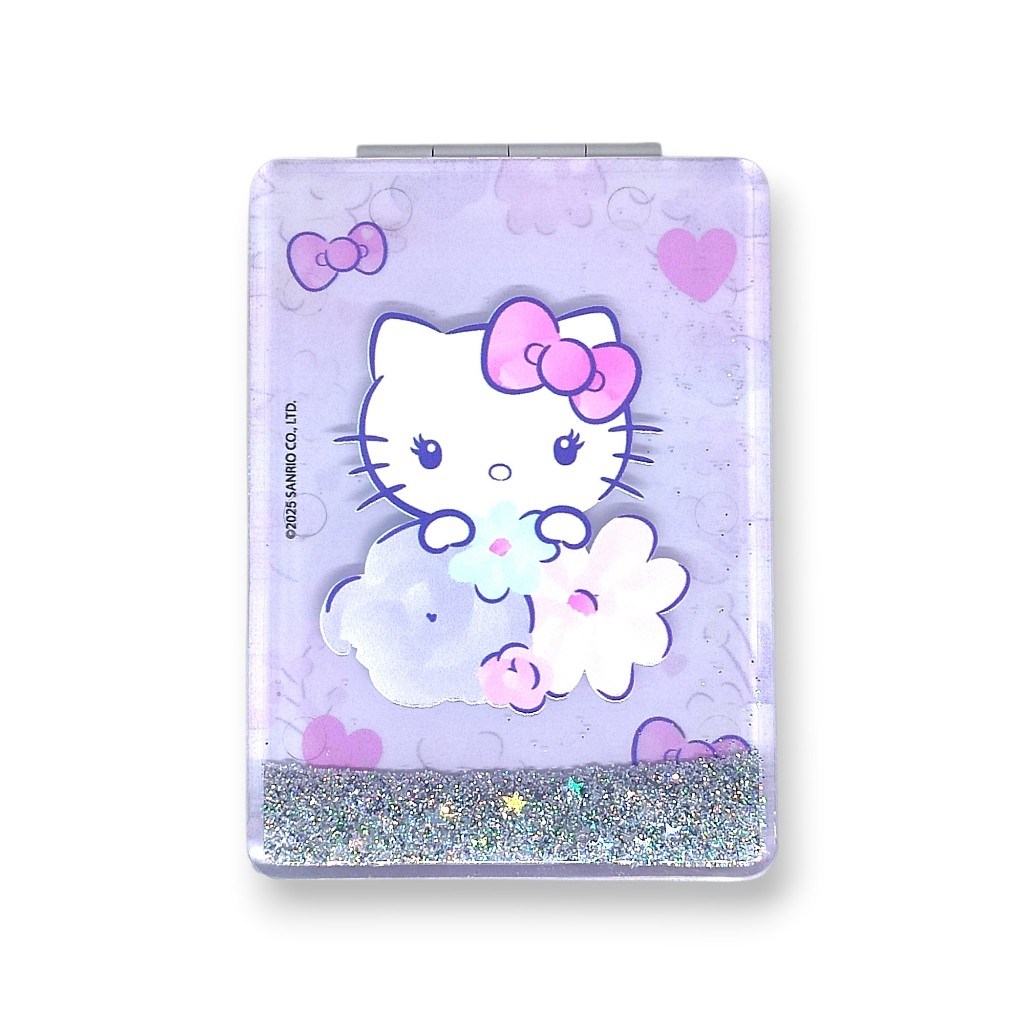 Espelho de Bolso Hello Kitty Dupla Face Dobrável Retangular com Zoom x2