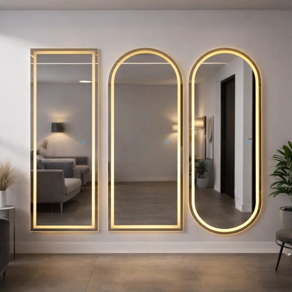 Espelho de Chão ou Parede LED 170x70 Grande Vidro Temperado Touch 3 Cores Luxo Não Distorce Imagem