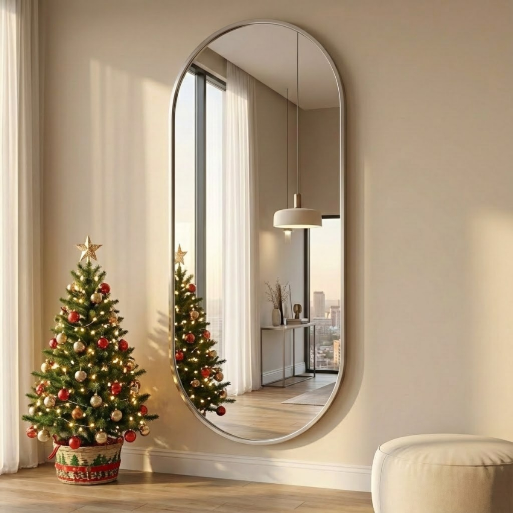 Espelho de Chão Oval Luxo Resistente Maresia Alumínio