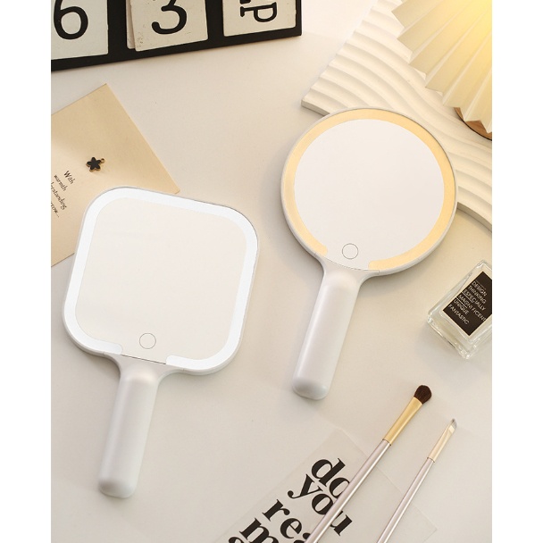 Espelho de mão com 3 Led recarregável tpey-c para maquiagem