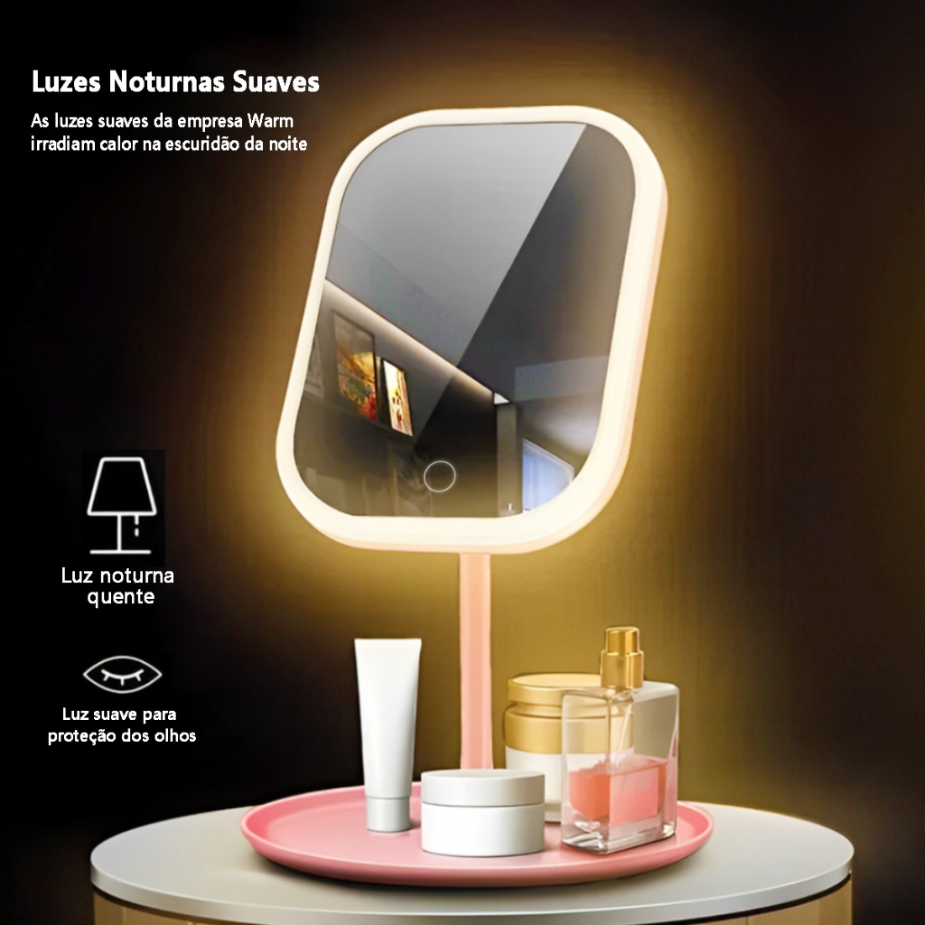 Espelho De Maquilhagem Portátil Com Controlo Tátil Inteligente LED E Regulação De Intensidade
