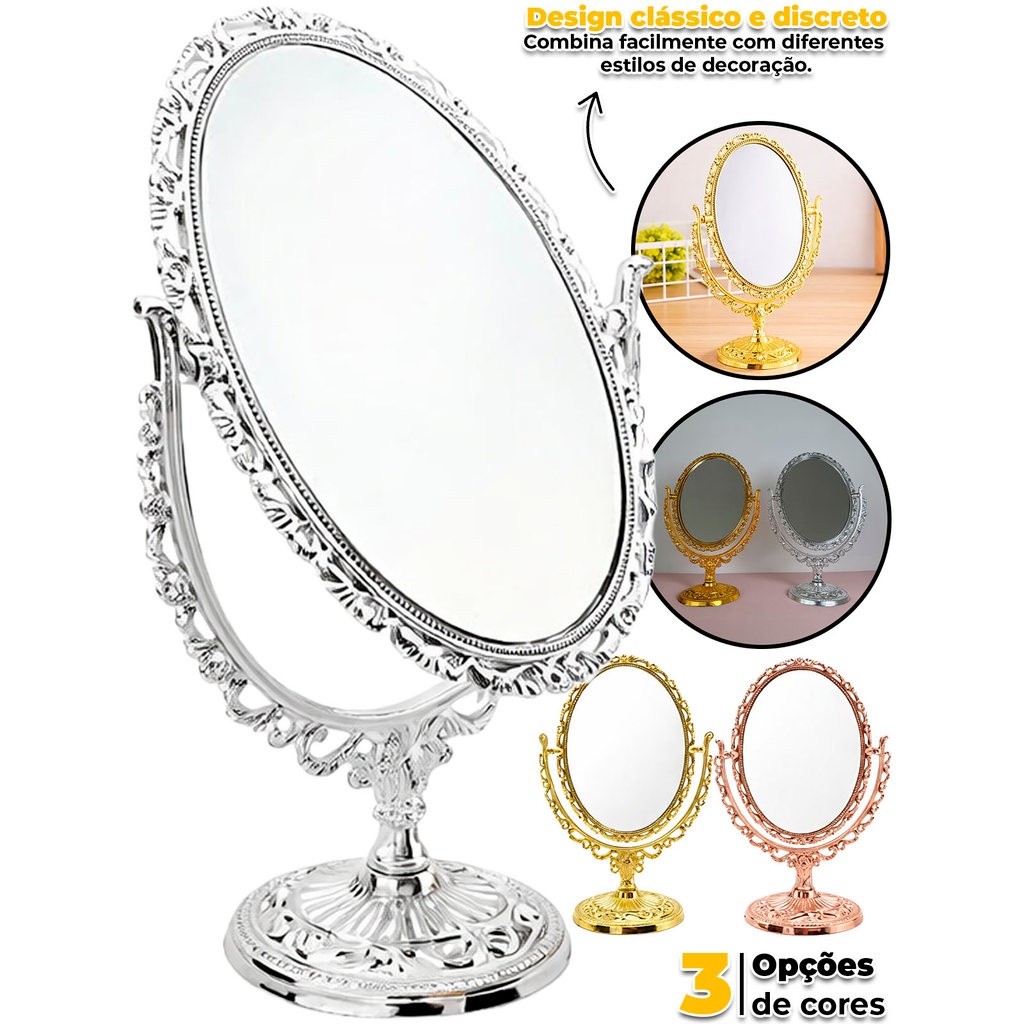 Espelho De Mesa Classic Platina 12,5x19cm P/ Maquiagem Penteadeira Bancada E Decoração