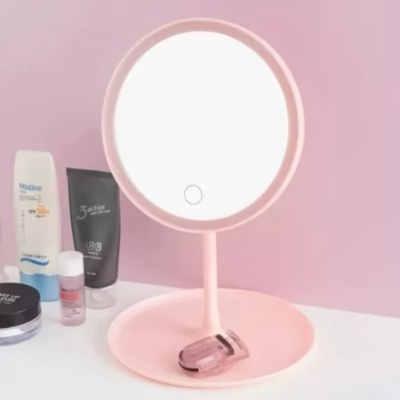 Espelho com lÃmpada Led e apoio para mesa. Possuiuma combinacäo perfeita de espelho e Led, ideal parafazer desde maquiagens básicas até as mais elaboradas! Seu sensor de toque é Touch, deixando-o com umdesign delicado e harmonioso. Também possui rotacäode 180 graus deixando sua utilizacäo ainda mais prática. Possui três tipos de luz: quente, fria, e mesclada (luzquente + luz fria)Completamente portátil, podendo ser montado edesmontado facilmente. Contém: -1x Espelho de Maquiagem-1 x Cabo USB Especificacǎo: Luz:Led com 3 variacöes Material: plastico, vidro, metal Cor: Branco Modo de luz: tipo de toque Tamanho: 30x18x18 cmDiÃmetro: 17,5cm com moldura e 15,3 cm de espelho