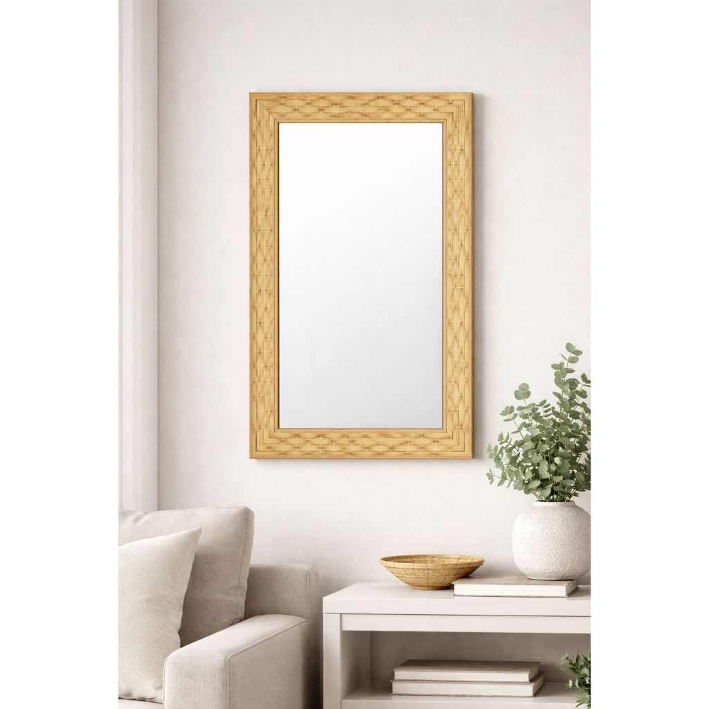 Espelho De Parede Com Moldura Madeira Decorativo 34Cm X 55Cm Multiuso, Cores: Bege, Branco, Preto