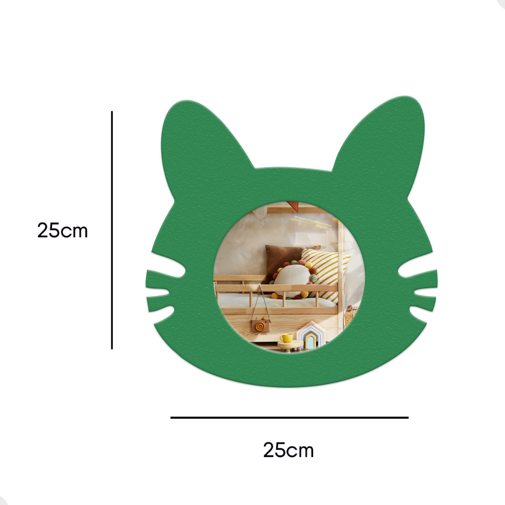 Espelho de Parede Gato Decoração Infantil Colorido Kids 25x25cm Quarto de Meninos Meninas Verde