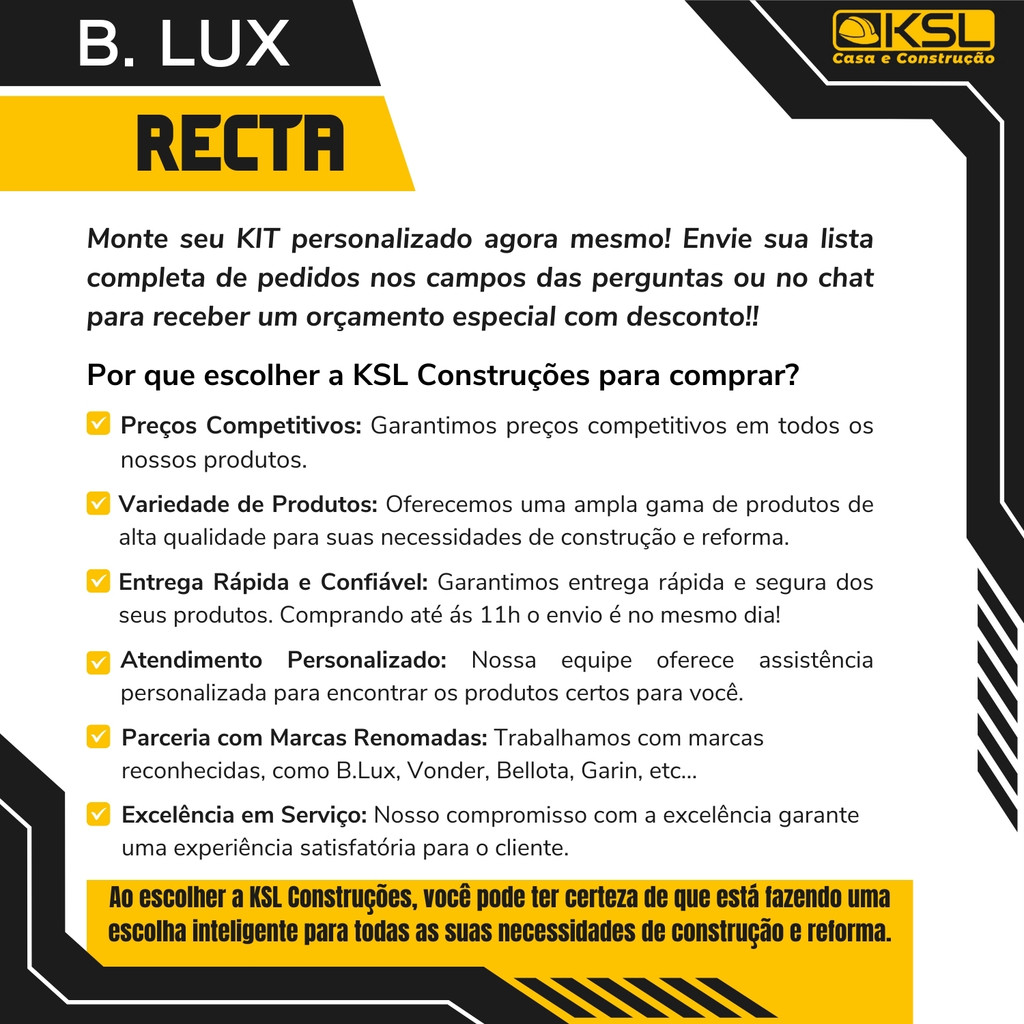 Vendido pela loja KSL Construções com avaliação 4.9/5 na Shopee e 12 produtos catalogados aqui no SuperOfertas Brasil. Esta loja ocupa a 19.034ª colocação no ranking de lojas por volume total de vendas registradas (entre 138.316 lojas).